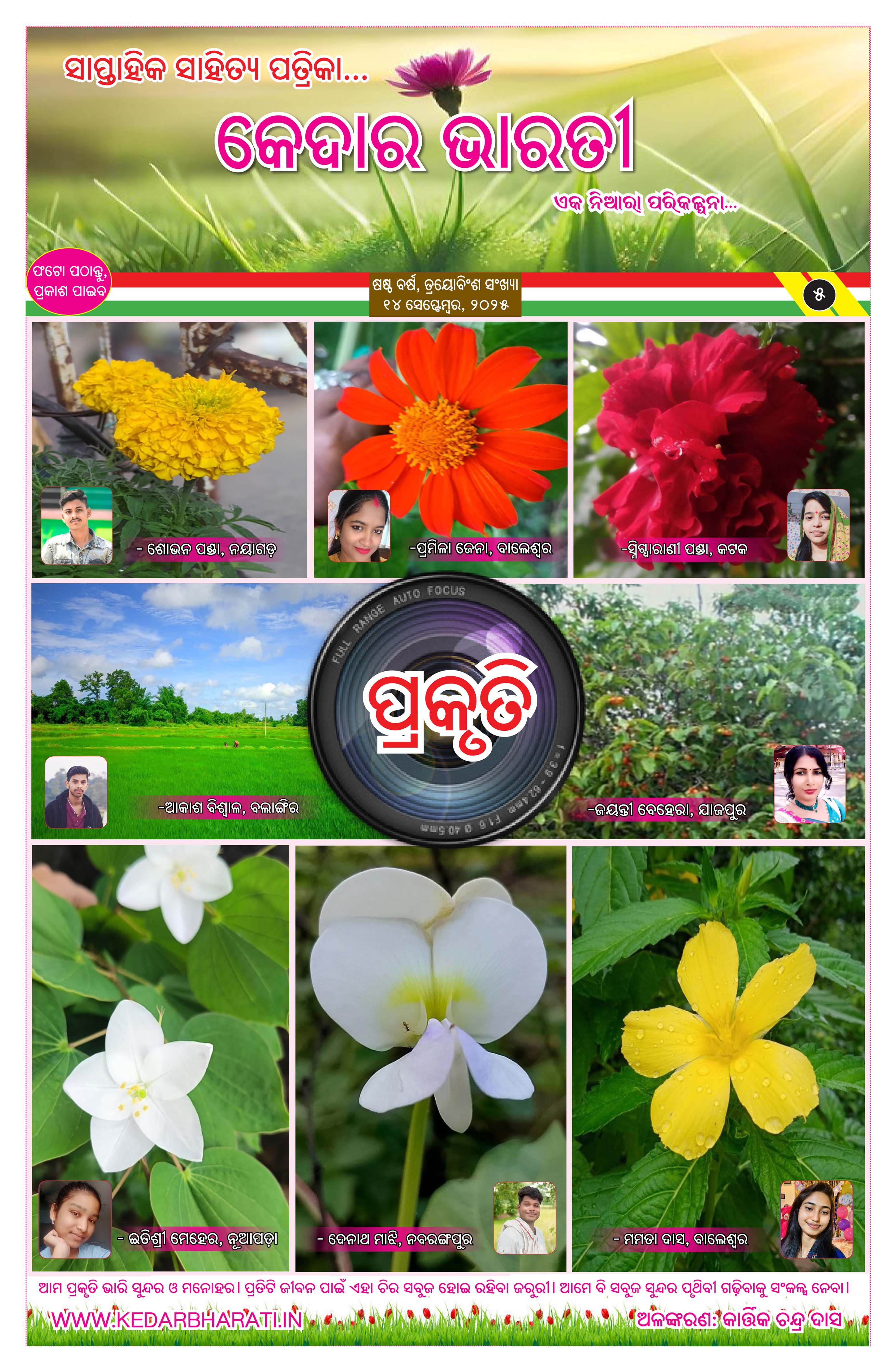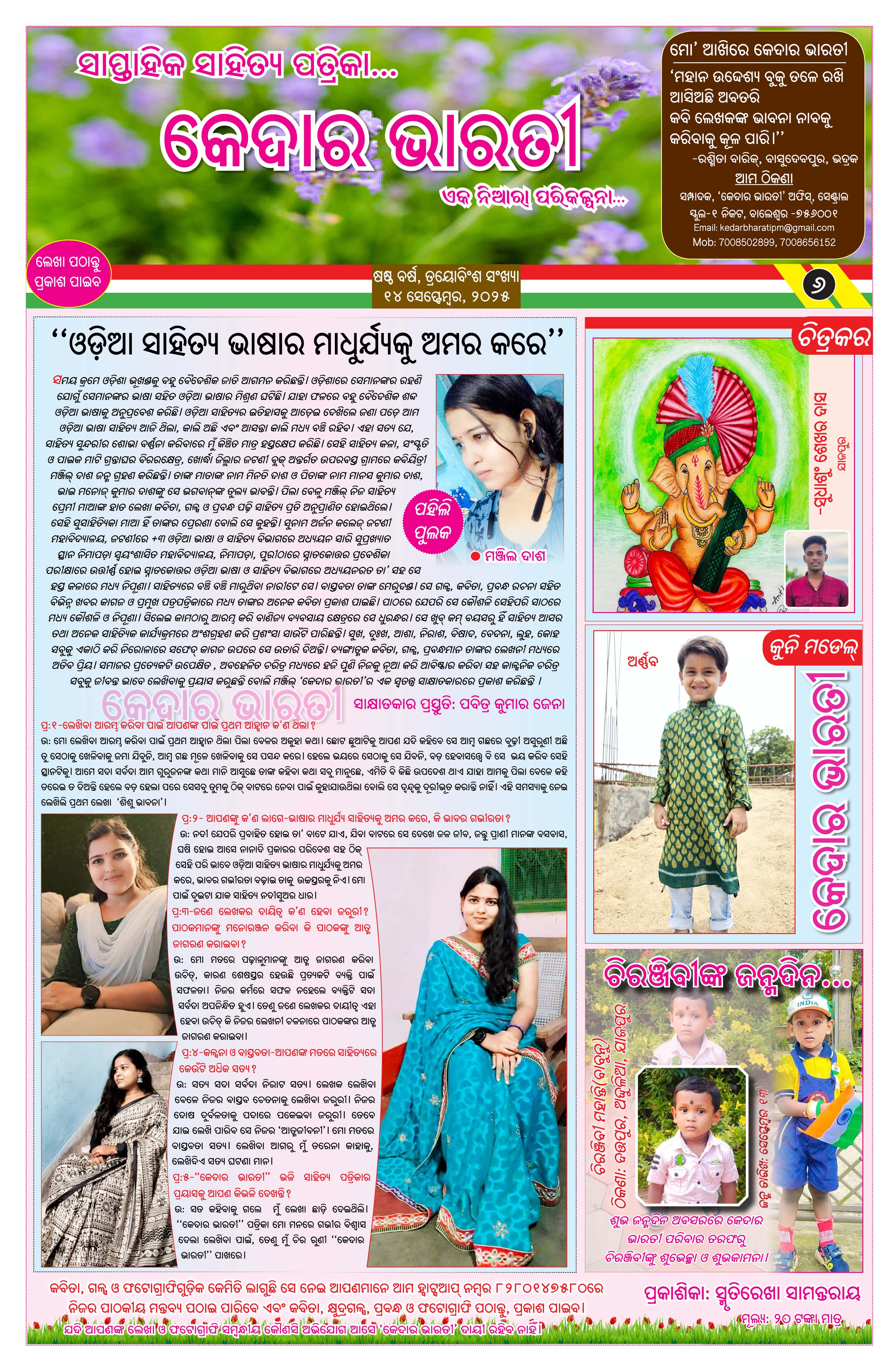 ସୂଚନା: ଏଣିକି ପୂର୍ବ ଭଳି ପ୍ରତି ସପ୍ତାହର ରବିବାର ଦିନ ପ୍ରକାଶ ପାଉଛି ଆପଣମାନଙ୍କର ପ୍ରିୟ ସାହିତ୍ୟ ପତ୍ରିକା ‘‘କେଦାର ଭାରତୀ’’ର ସାପ୍ତାହିକ ସଂଖ୍ୟା। ପଢ଼ିବାକୁ ଭୁଲିବେ ନାହିଁ।