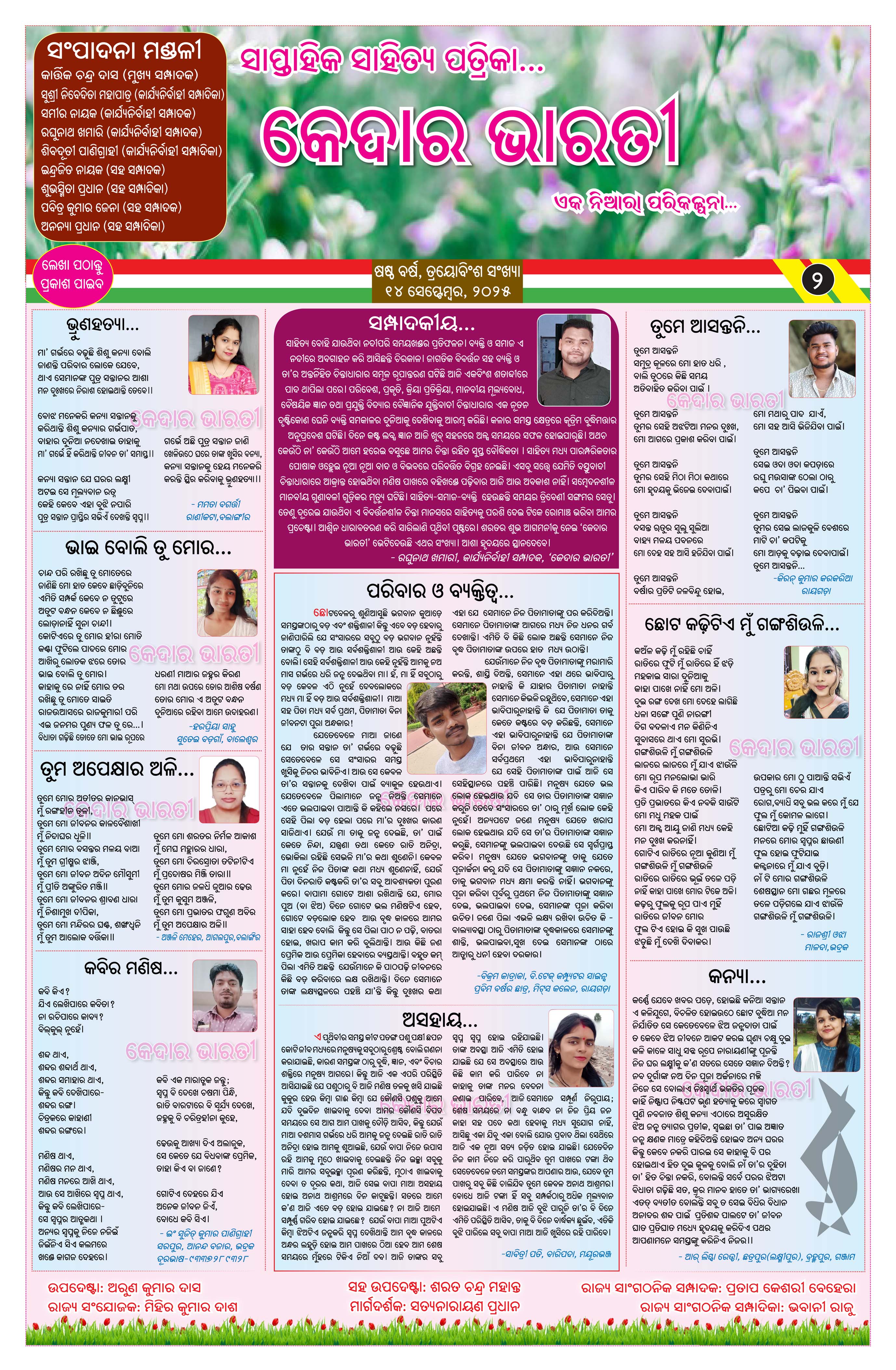 ସମ୍ପାଦକ, ‘କେଦାର ଭାରତୀ’, ସେଣ୍ଟ୍ରାଲ ସ୍କୁଲ ଛକ, ଭୋଇସାହି, ବାଲେଶ୍ବର, ଓଡ଼ିଶା -୭୫୬୦୦୧